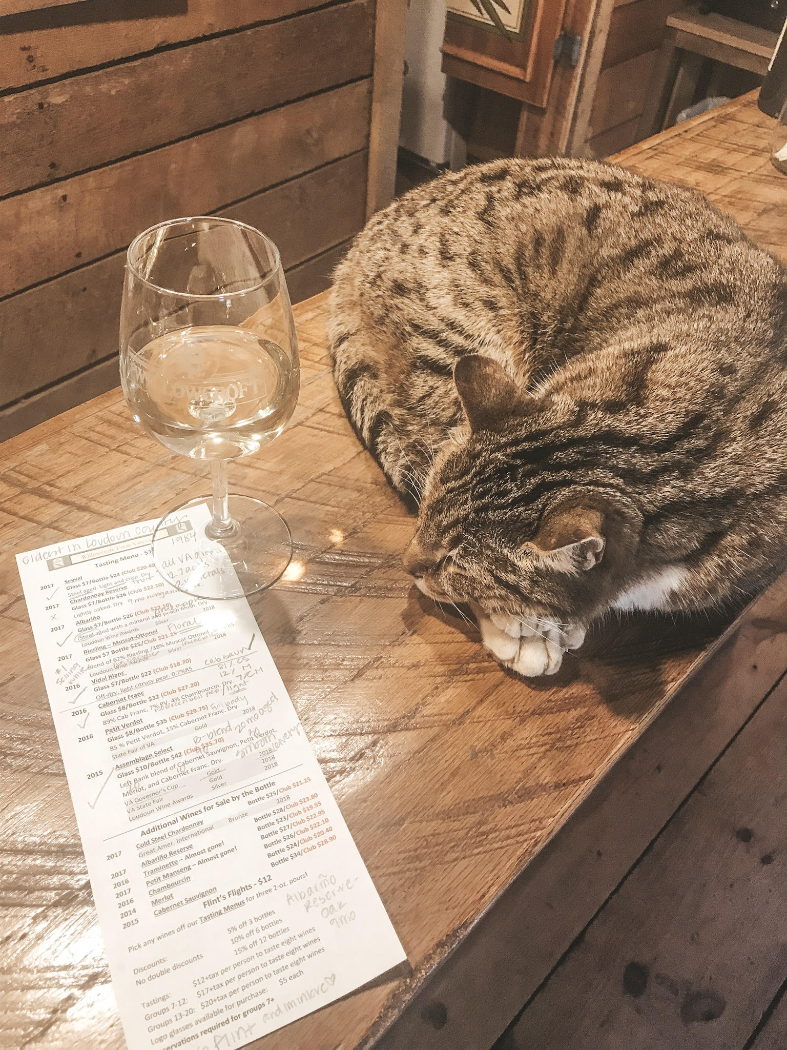 Willowcroft Farm Vineyards – We had to stop at this winery because they are the oldest winery in Loudoun County. When we arrived, we were pleased to see a beautiful view over the Loudoun Valley and a cat named Flint! He was so cuddly and hung out with us at the bar our entire tasting! Any winery with a cat is automatically one of our favorites! I loved how they produce all their wine with Virginia grown grapes. My favorite white was their Seyval, it was light and crisp. My favorite red was their Assemblage, their Bordeaux blend. It was very smooth and velvety; It just won Gold in the 2018 VA Governor’s Cup. We can’t wait to visit again!