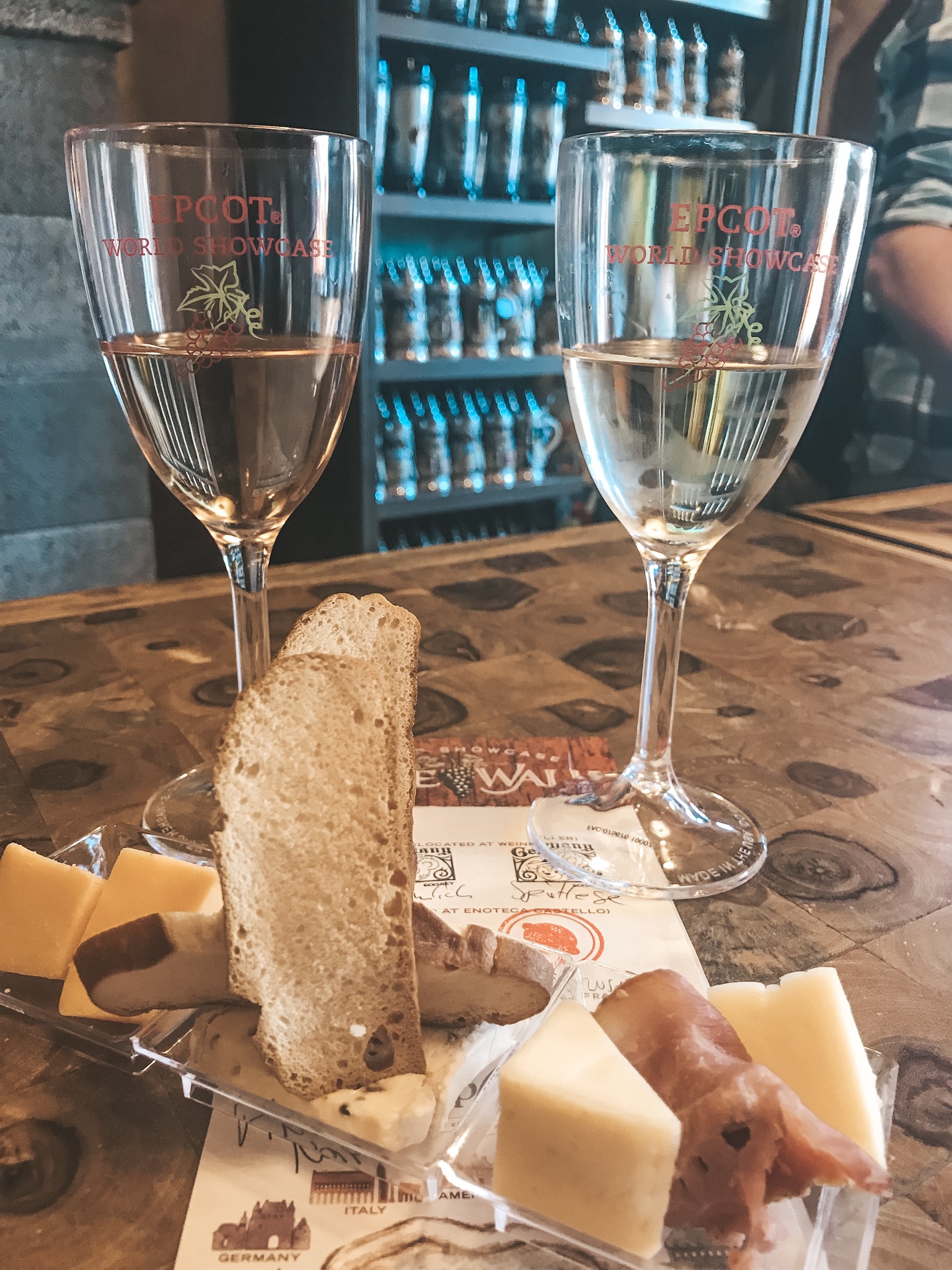 We decided to start in Canada and move that way around the countries. We did not complete a “true” drink around the world where you have a drink in each country… we just didn’t need to! I decided to complete the World Showcase “Wine Walk.” Three countries participate and you get two samples of wine at each country. The wine walk started in France. I tasted a delicious Vouvray and a Pinot Noir. We enjoyed lunch at Les Halles Boulangerie-Patisserie, crossont sandwiches and a delicious macaroon. They are known for their amazing pastries! Later in the day we visited France again for a glass of Champagne;)
