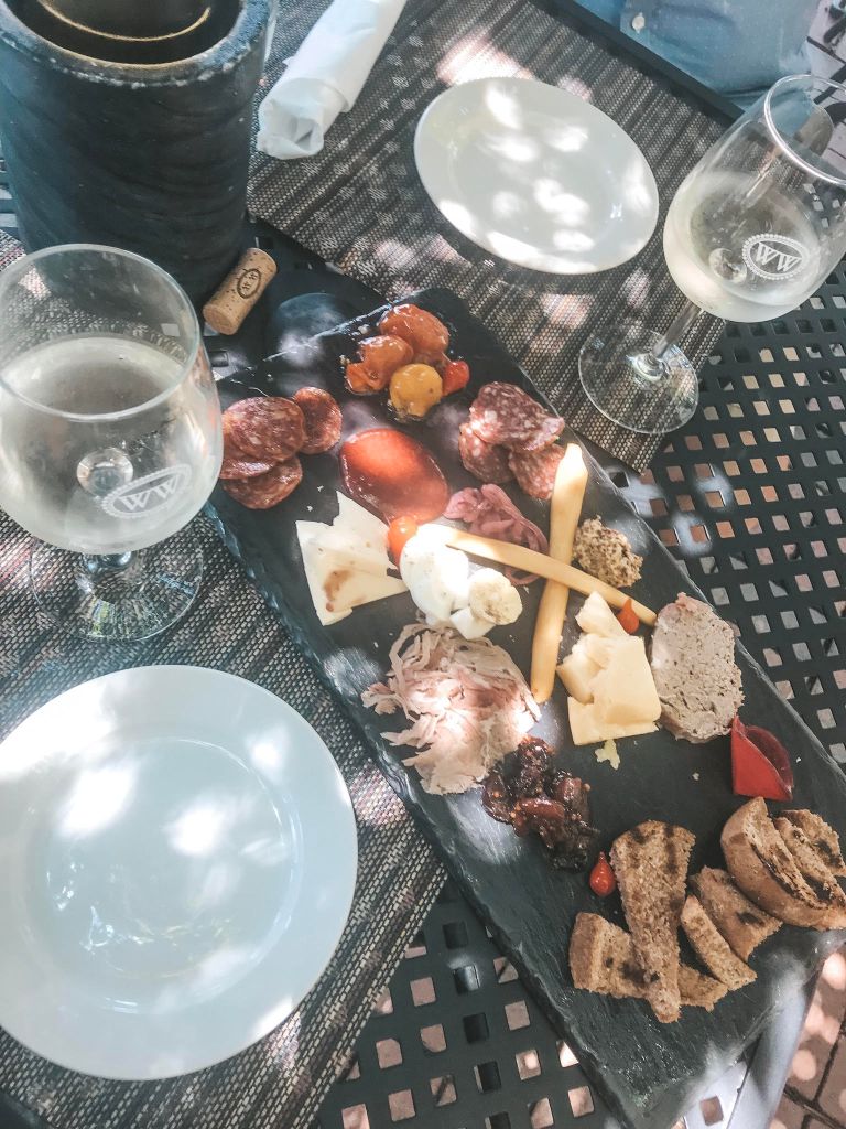 Williamsburg winery is not only a winery, you can also stay at Wedmore Place and dine at Gabriel Archer Tavern or Cafe Provencal while you’re visiting. During our visit we ate at Gabriel Archer Tavern. This is a great spot with amazing food. They have their own garden where they grown greens and herbs and source local when they can. We enjoyed the Country Platter and shared the Roast Beef and Gouda sandwich as well as a bottle of James River White! ***Sips and Trips Tip ~ if you dine, you have to purchase wine at the restaurant, there is a slight up charge compared to the wine store a couple yards away. Per ABC law, you can’t leave the restaurant with the wine purchased at the restaurant to enjoy in their pavilion. If you don’t finish your bottle, you can take it home!
