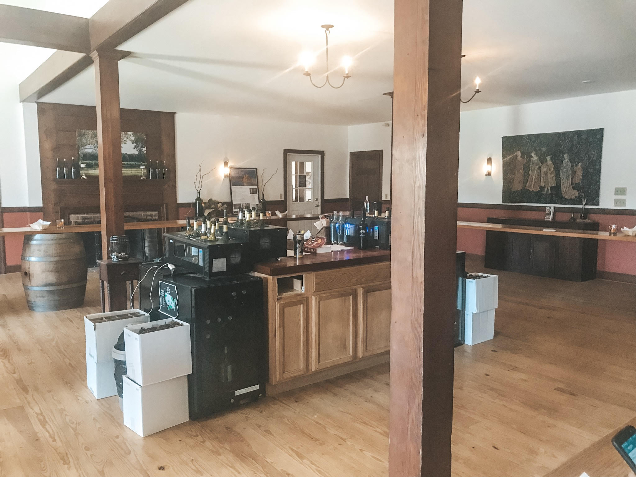 When you enter into the Tours and Tasting area you enter into a gift shop. This is where you pick the tasting you would like to do then pay. You then take your receipt to the tasting bar in the next room. The bar is located in a large, open room. It is a large square made with wood and wine barrels. We had a wonderful tasting and attendant. We visited during the week so we had plenty of time to ask questions and chat. Our tasting was informative and relaxing. We had SO MANY FAVORITES! A few of our favorites included the Wessex Hundred Dry Rose, James River White, Wessex Hundred Viognier, Governor’s White, Wessex Hundred Cabernet Franc, and OF COURSE Adagio. To give you some fun facts, the James River White is a Sauvignon Blanc made from grape juice from Washington State. Williamsburg Winery prides itself on building relationships and working with other wineries to produce their wine. They make plenty of Estate grown wine but the prices show. The James River white is ONLY $9.50. The Governor’s White is a Riesling made with grapes from Washington State as well. This wine is the longest running wine at the winery. They started making it in 1987 and this wine is ONLY $9.50 a bottle. Post tasting you can return to wine shop area. This is where you can purchase wine, cheese, crackers, etc.