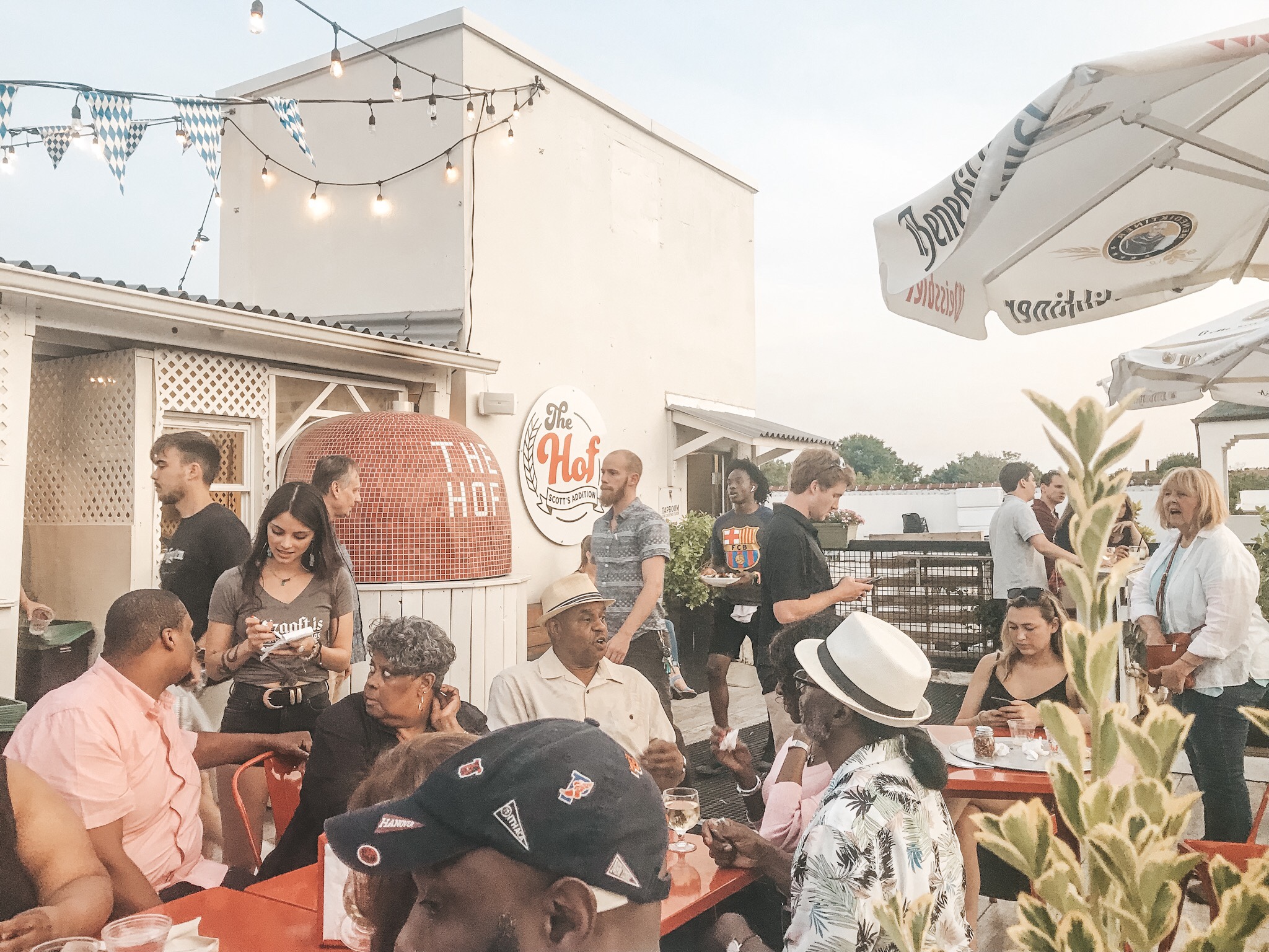 The HofGarden – This is such a fun spot! You can add this to any date duo in Scott’s Addition. Whenever we go, we climb right up to the roof top bar. We have never hung out inside. When we go, we just grab a couple drinks and enjoy the sunset. The Hof is located in the the historic Hofheimer Building in Scott’s Addition. This place is a mix of a German beer hall, brewpub and music venue. There are three floors, the beer hall, loft and music lounge and roof top. They do sell food, they have a brick oven on the roof where you can order pizzas and other bar food like sandwiches and burgers. They do have some fun apps like the German Sampler, Cheese Plate and the Giant Soft Pretzel. They sell more than just beer, they have wine as well as cocktails so they have something for everyone! There is plenty of seating and room to move around but on a nice night, expect that it will be busy!