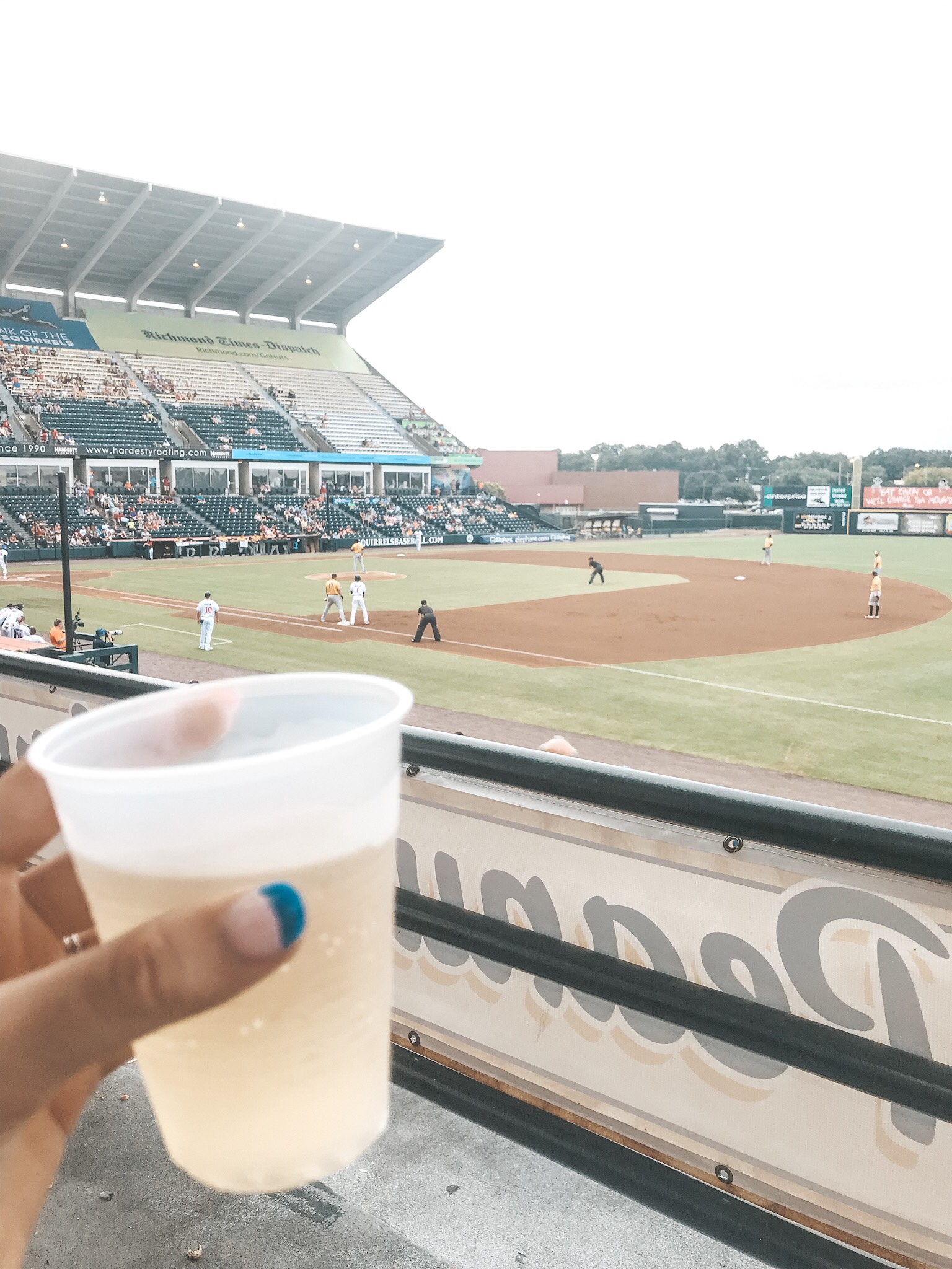 Goooooooo Nuts! Hey all! A couple weeks ago Zach and I got tickets for The Richmond Flying Squirrels for date night! We decided to ditch the regular seats and sit in the Peanut Gallery and it was such a treat!