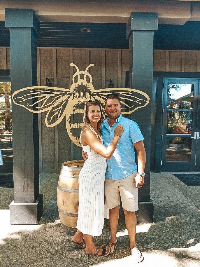 Our third stop was Honig Vineyard and Winery. Honig means ‘honey’ in German. I am totally obsessed with their bee logo and labels. Our tasting was seated on their outside patio. It was so lovely. Honig specializes in Sauv Blanc and Cab Sauv. We really enjoyed their Classic Sauv Blanc and their Napa Valley Cab Sauv. Honig has been making wine since 1980. They have 50 acres of vines and partner with 20 other growers in the valley. They produce 80,000 cases of wine in total and their Classic Sauv Blanc is 50,000 of those cases! It was THAT good! Cool, crisp, and refreshing on a hot California afternoon!