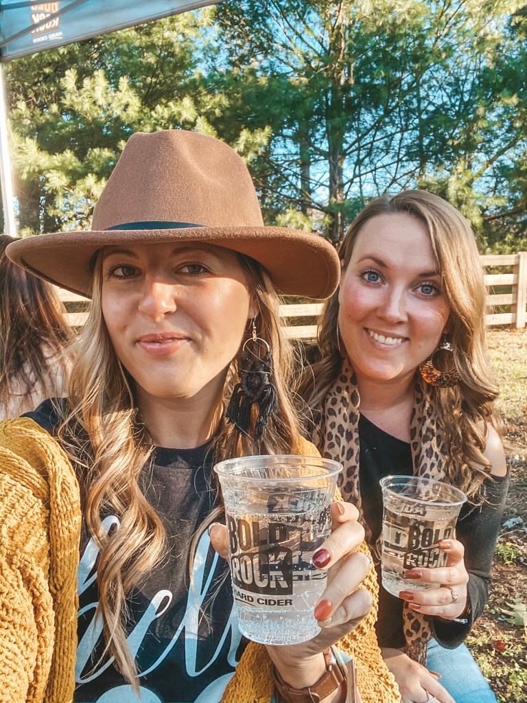 Bold Rock Cider– Our last stop for the day was Bold Rock. Unfortunately their main area was closed for a private event but their Barrel Barn was open. I was eager to try their new hard seltzers and I loved them! Everyone enjoyed a glass while we hung outside!