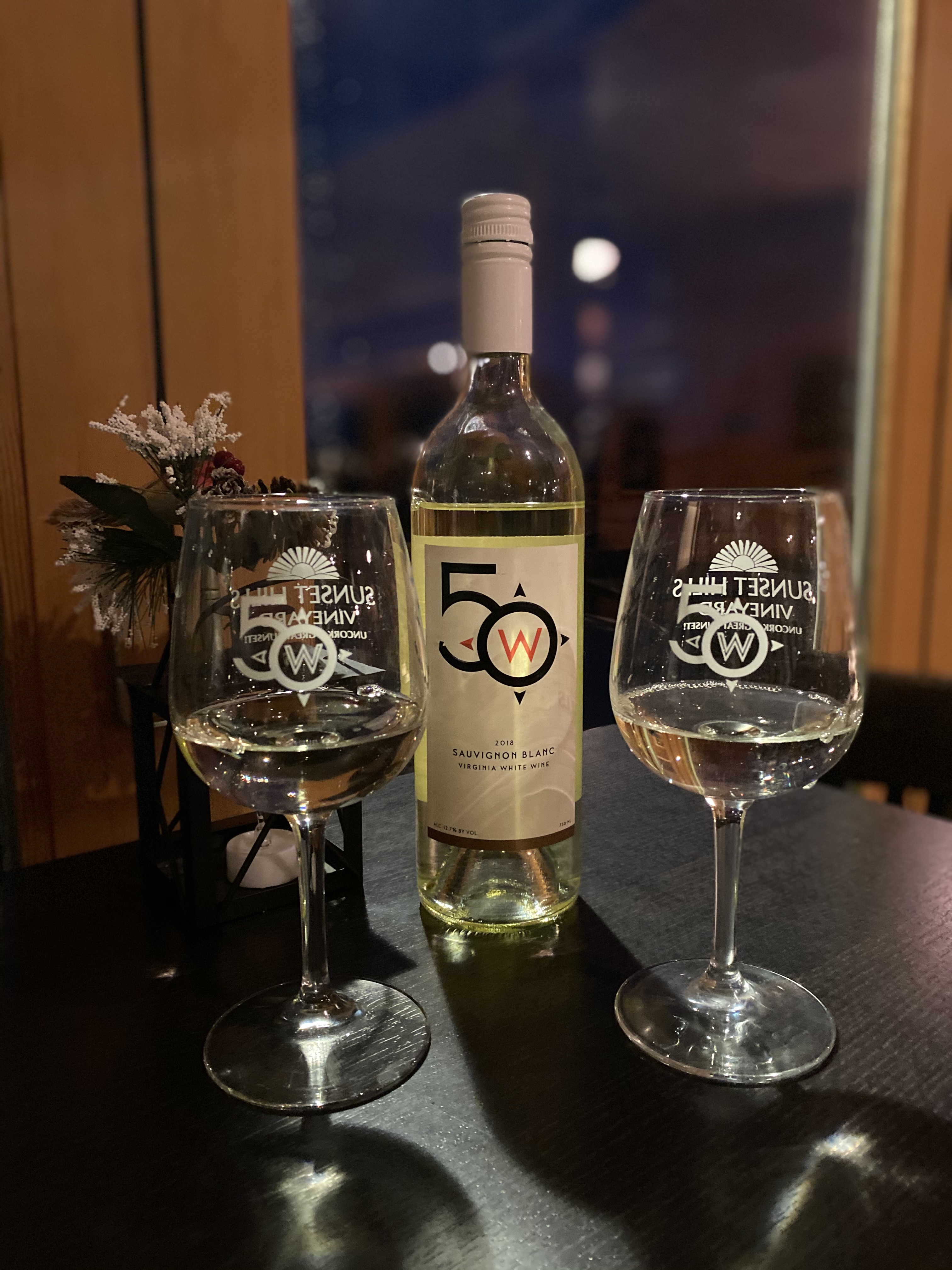 Our next and last stop for the day was at 50 West Winery and Vineyard. This was another winery that had been on our list. 50 West is owned by the same family as Sunset Hills and they also share the same winemaker. They had a beautiful tasting room with plenty of indoor seating as well as outdoor. Their tasting is $10 for 6 wines and they also offer light fare if you are hungry… fresh bread, meats and cheeses. You can pack your own picnic, you just have to be outside! Some of our favorite wines included their Sauv Blanc, Vidal Blanc, and their 16 Aldie Heights Cuvee. We enjoyed some Sauv Blanc and relaxed in their tasting room. We had a wonderful visit.