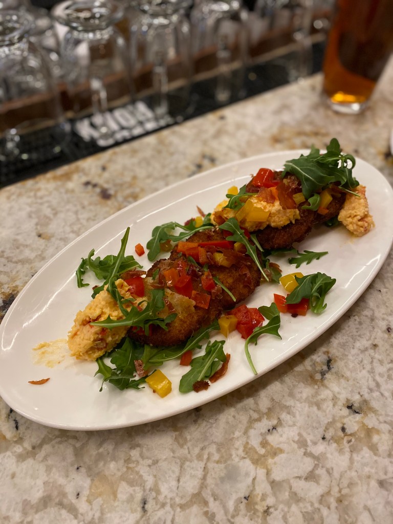 Post tasting we hit up our favorite restaurant in Purcellville, West End Wine Bar and Pub. Y’all need to do yourselves a favor and go if you haven’t been. Whenever we stay in Loudoun, we always come here for dinner. They have amazing wine and food. During this visit, I enjoyed the Whiffletree Farm Crispy Chicken Confit while Zach enjoyed the Fried Bone-In Pork Chop. We also shared the Fried Green Tomatoes as an app! We have never been disappointed with a meal yet and we always leave full!