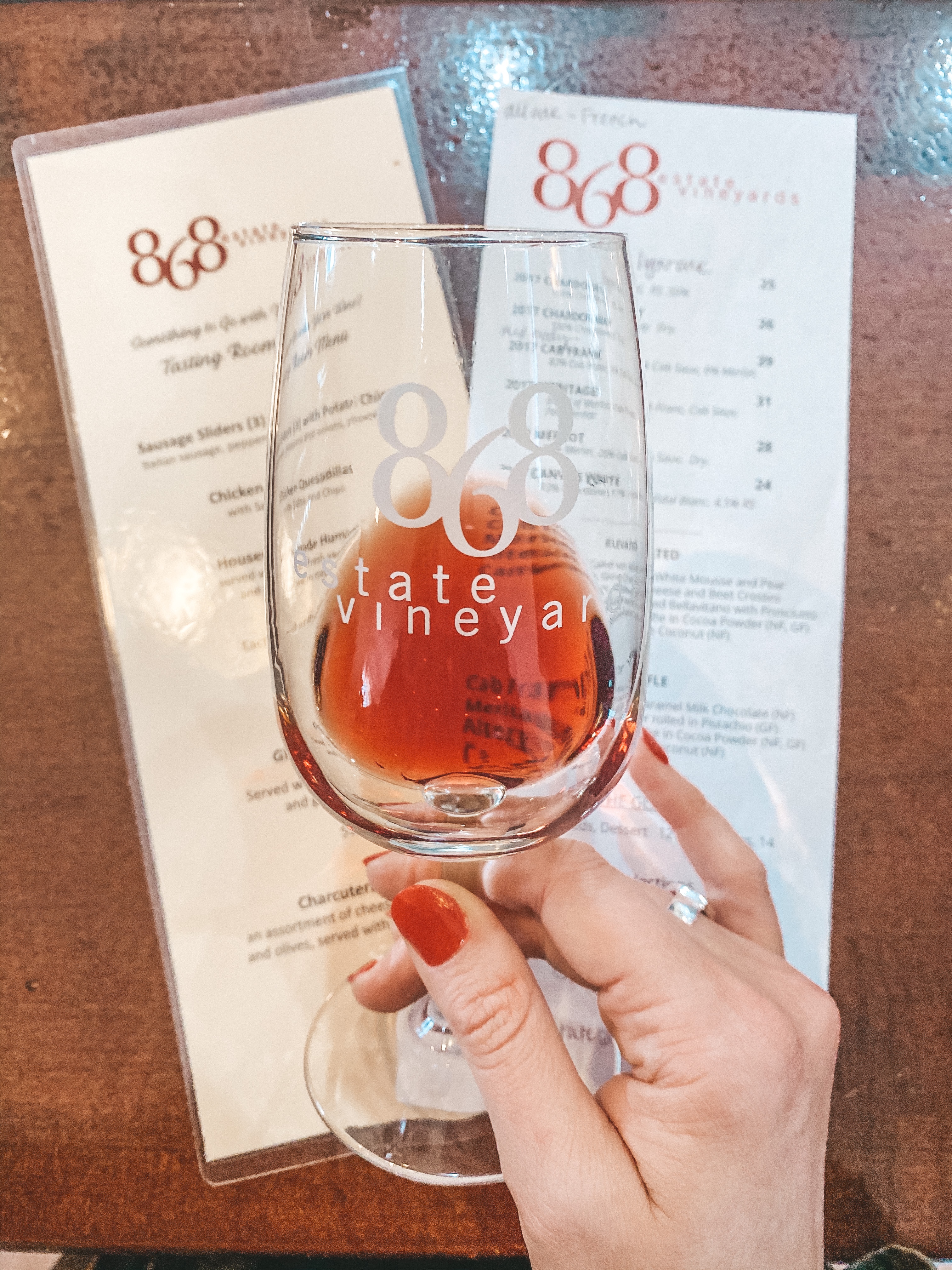 Our final stop and last minute decision of the day was Hillsborough. We had only planned to stop at three but we decided to grab a flight to share at Hillsborough. I am so glad we stopped here because they had an AMAZING view… and wine! It was too chilly to sit outside but we snapped a couple photos. Hillsborough does not do traditional tastings but they do have mini flight options available. We went with the flight of their Cabernet Sauvignon, Bloodstone, and Petit Verdot. We enjoyed all their wines and had a nice time sitting by their fireplace. If you enjoy beer, this is a winery that is also a brewery. Best of both worlds, am I right? We did not try any of their beer but maybe next time!