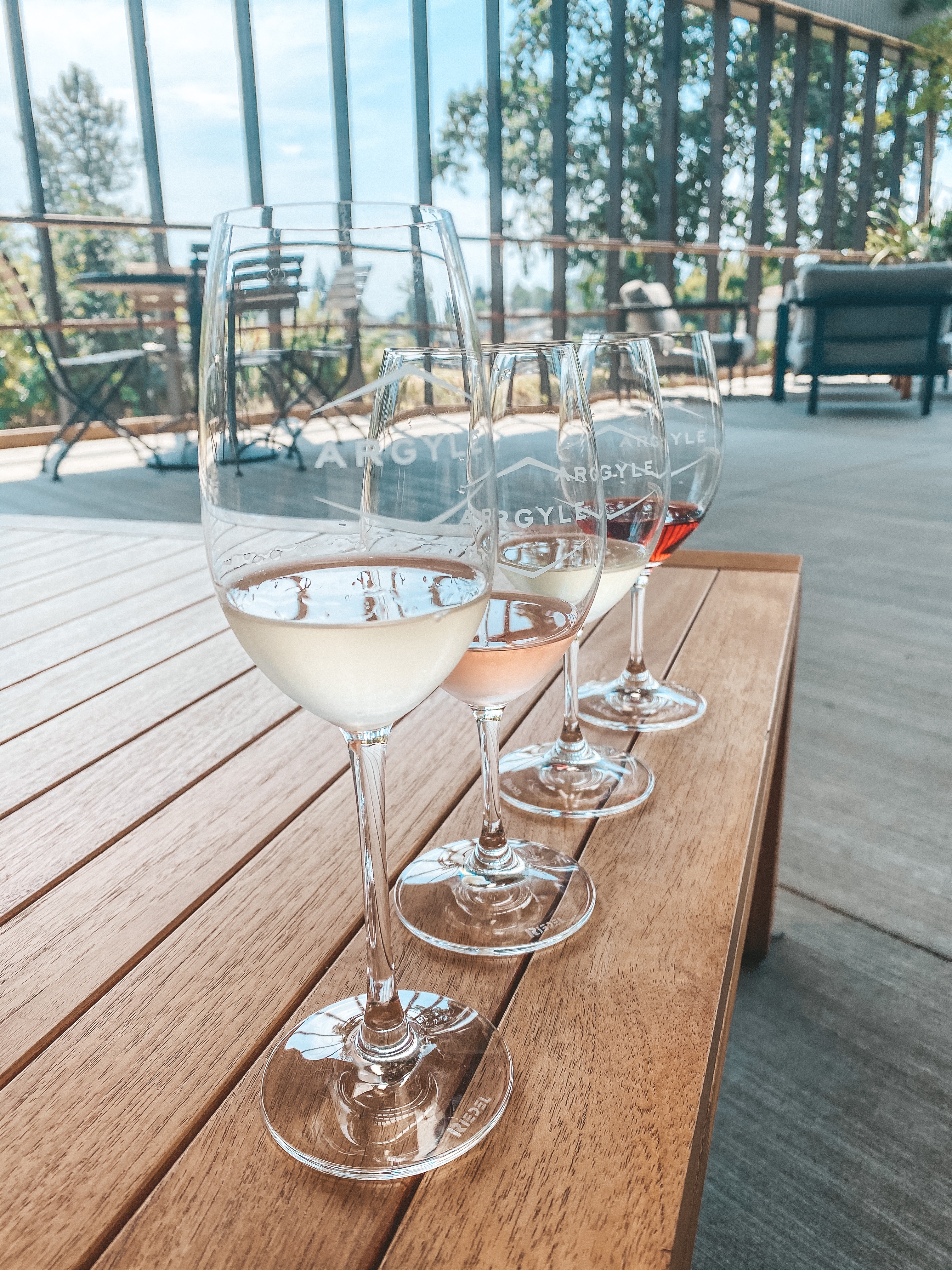 Did someone say bubbles? Argyle Winery was the winery I was most excited to visit. I have had their wine before and I knew I would love their tasting experience. Argyle was founded in 1987 with a belief that Oregon’s cool climate would produce amazing sparkling wine. Their tasting room and production space was formally a hazelnut (filbert if you’re local) processing plant. All the wood is refurbished and their space is breathtaking. Argyle offered two flights, Zach did the traditional flight ($25) and I had the sparking flight ($30). We had so many favorites but we loved their Art of Sparkling, Knudsen Vineyard Blanc de Blanc, Knudsen Vineyard Brut, and their Lone Star Vineyard Pinot Noir. We sent some bubbles home and I am hiding them!