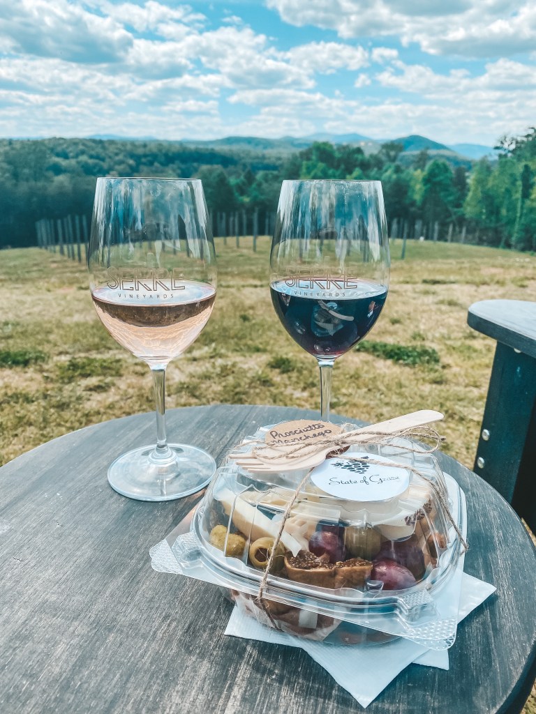 Serre offers a traditional tasting ($20/$16) of ten wines with or without their souvenir Riedel glass. If flights are more your style, they offer those too! Some of our favorites included their Knockout Rose, Cabernet Franc, and The Early Blend. If you come hungry, Serre partnered with State of Graze and offer small and large charcuterie snack packs. We enjoyed a glass of wine and a small charcuterie pack while enjoying the gorgeous view!