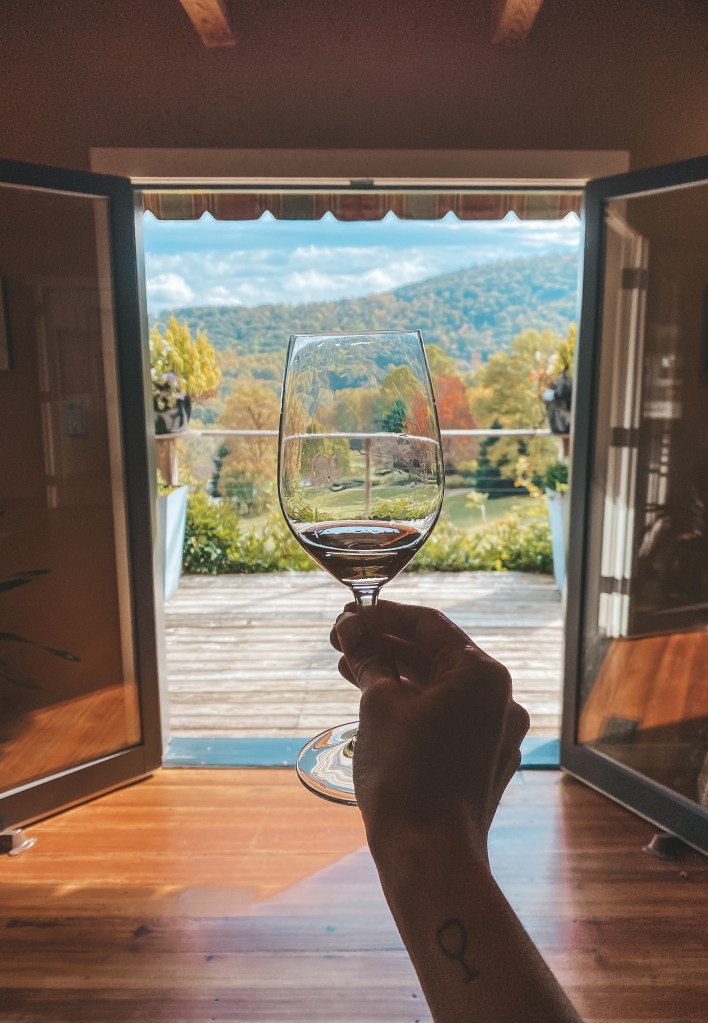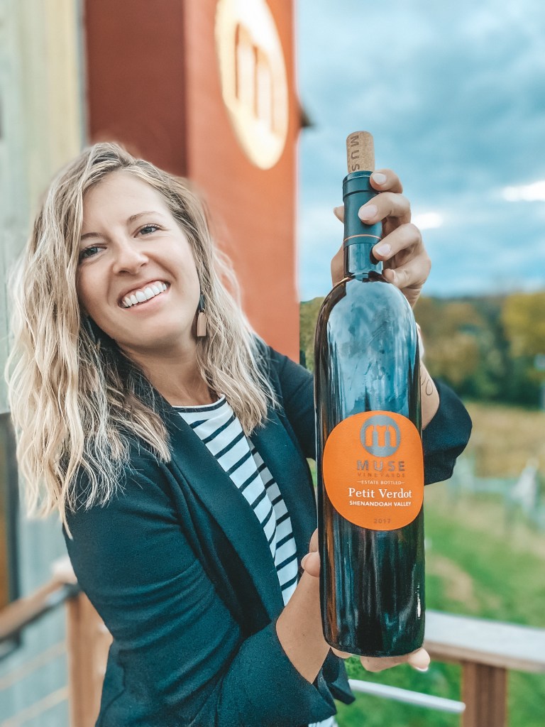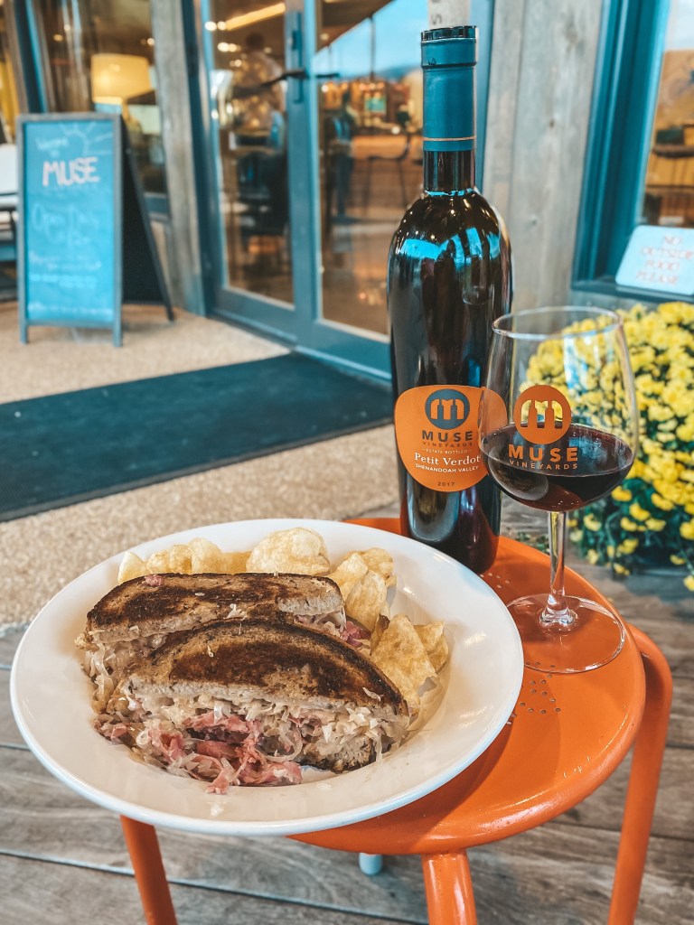 Our final and maybe my favorite (!) stop of the trip was Muse Vineyards. I heard a lot about Muse and I was eager to try their wine. Muse is nestled along the scenic North Fork of the Shenandoah River and among Shenandoah’s beautiful mountains. The tasting room is modern and casual, with tons of comfy seating options indoors and out. Muse also offers food Friday through Sunday and a limited menu on other days — you do not get the restaurant feel either! I loved how they were open late on a Friday so we could enjoy dinner and a bottle for our final stop. Next time I visit, I want to walk their 1.8 mile self-guided vineyard tour!
