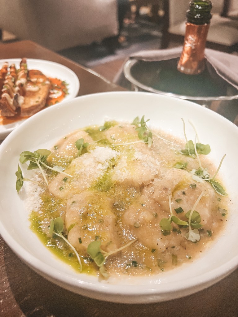 We ended our day the best way possible, dinner at Echelon Wine Bar. Echelon is a rustic modern wine bar located in the heart of historic downtown Leesburg and was founded by the owners of Lost Creek Winery. I absolutely love the vibe and atmosphere here — we enjoyed a bottle of Thibaut Janisson Brut and enjoyed sharing their farm-to-table small plates.
