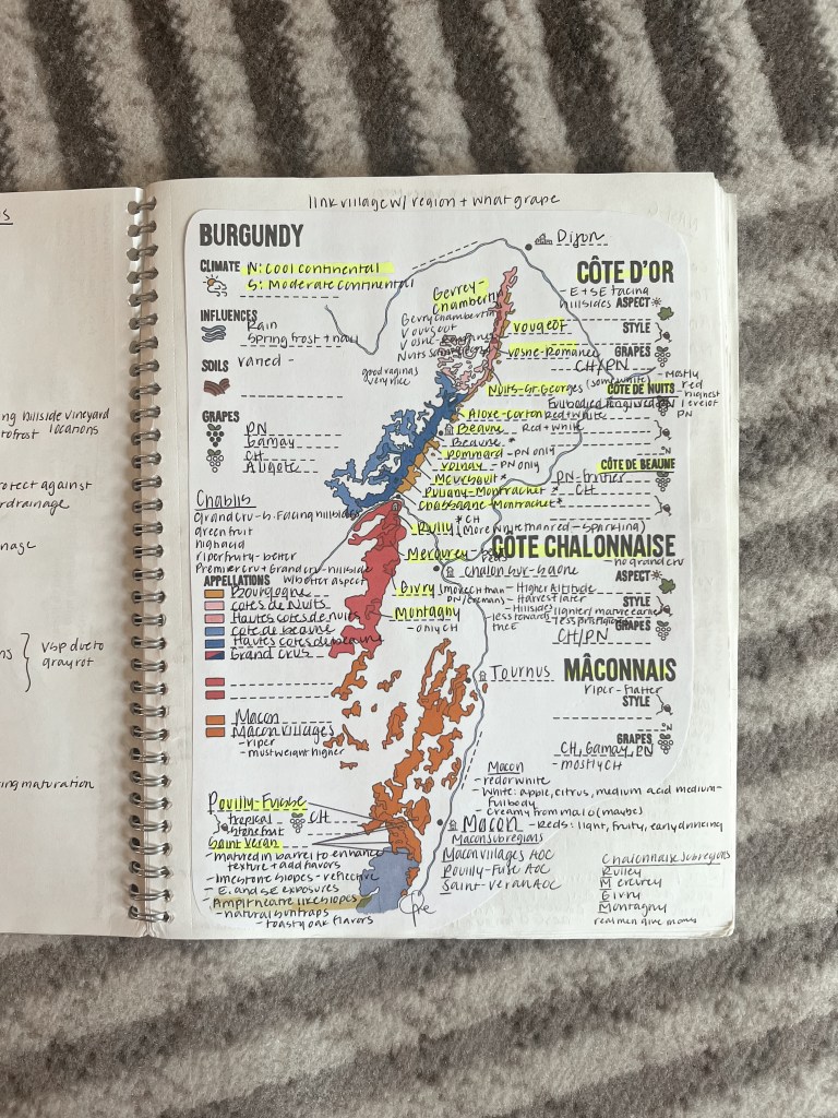 Stay on top of reading and assignments: Tracy provided us with a 10-week schedule of assigned readings and tastings, which helped keep me organized. I’d take detailed notes on each chapter, then complete the ThirftyFifty chapter quizzes, review the flashcards, and annotate the corresponding map. This thorough process helped me earn a Distinction on the theory portion of the exam.